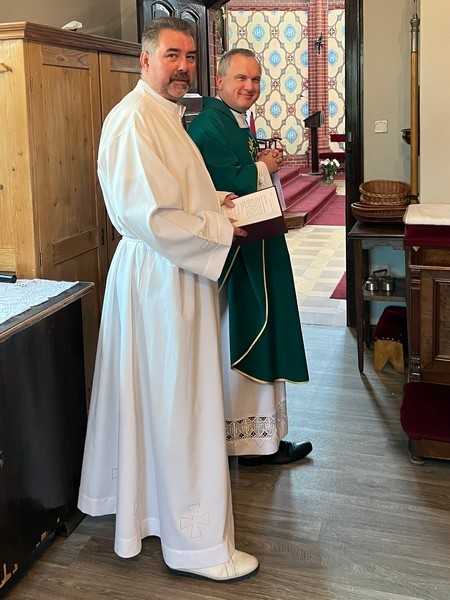 3 lipca ks. Tomasz Szczepanik obchodził imieniny. Nie zabrakło Eucharystii w intencji solenizanta, serdecznych życzeń i zdjęć robionych w radosnej atmosferze. Dziękując wspólnotom parafialnym i wszystkim parafianom, ks. Tomasz poczęstował cukierkami na osłodzenie dnia. Niech Matka Boża Wniebowzięta oręduje za księdzem Tomkiem i wyprasza potrzebne łaski.