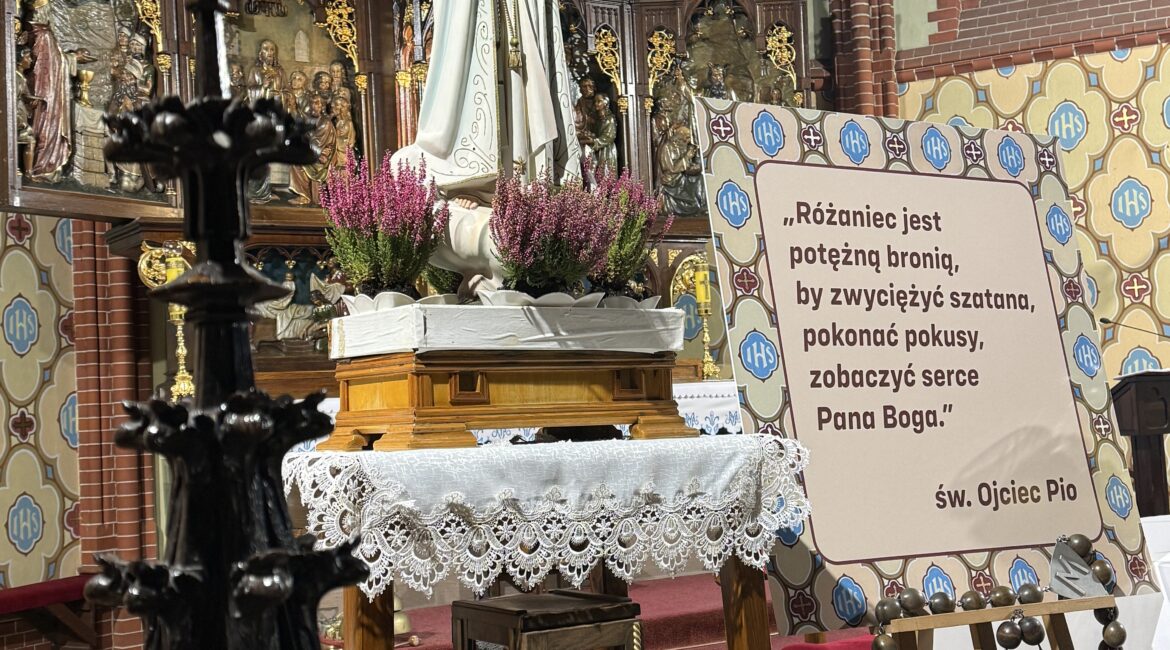 13 października przeżyliśmy ostatni Czuwanie Fatimskie w tym roku. Czciciele Maryi wiernie uczestniczyli od maja w czuwaniach. Uczestniczyliśmy z nadzieją na wysłuchanie przez Maryję próśb, z którymi przychodziliśmy. W kazaniu ksiądz proboszcz Arkadiusz Rzetecki powiedział: „Dziś największym cudem jaki może się wydarzyć to nawrócenie serca. To, że ktoś wróci do konfesjonału. Że ktoś zacznie modlić się z rodziną. Że ktoś przebaczy…”